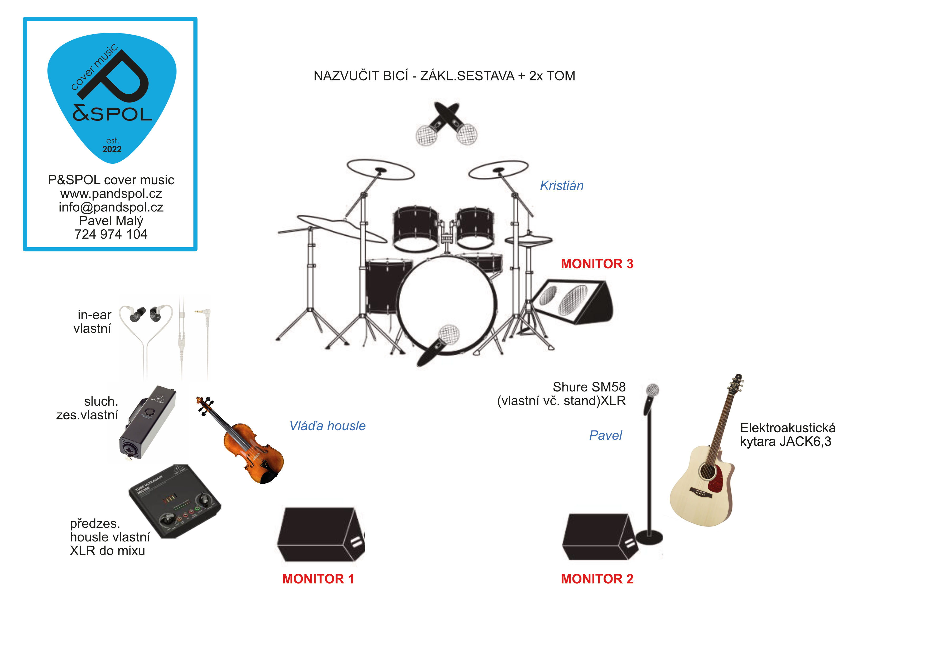 • zajistí bezproblémový přístup kapely na pódium/jeviště/místa vystoupení min. 2 hodiny před vystoupením (příprava aparatury, zvuková zkouška atd.)